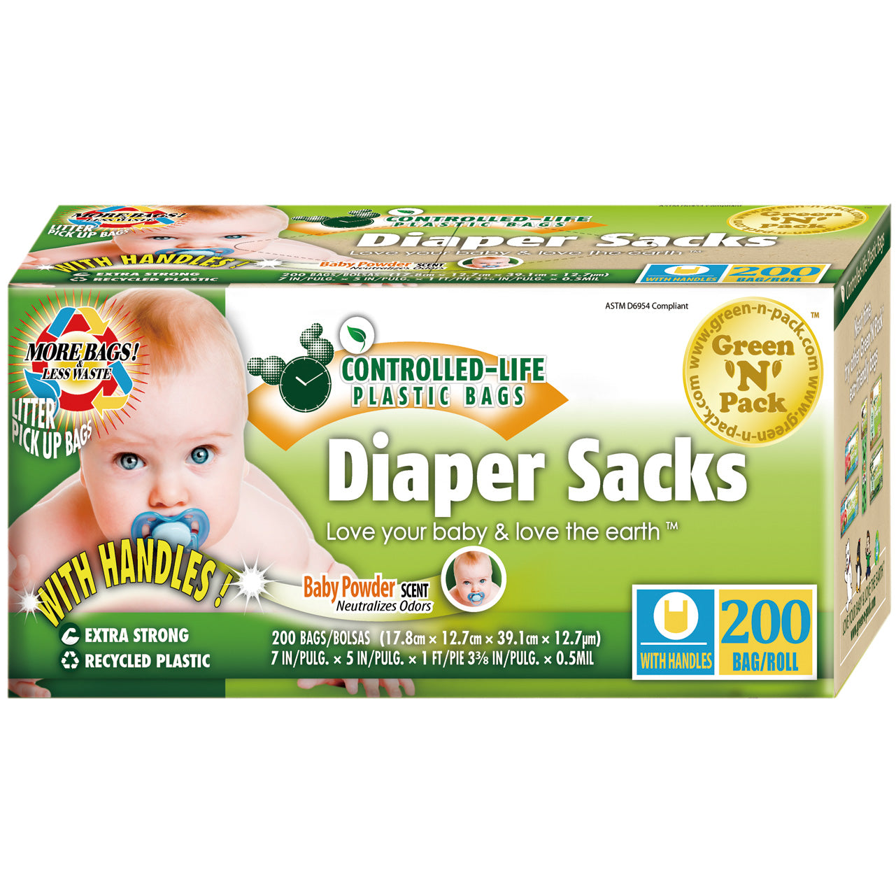 Enjoy Green-n-Pack Disposable Diaper Bags - Scented - 200 Pack every day at these amazing prices! Green-n-Pack bags are made from recycled and controlled-life plastic material which lasts a much shorter time in the open environment than ordinary plastic. Not for composting or anaerobic digestion. Please dispose of them responsibily. Product characteristics include: BPA free polyethylene (Please note: Description is informational only. Always read the product label before use and check with your health professional before using this product)200 CT