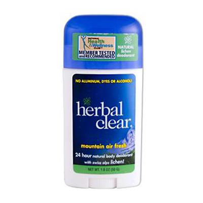 Go natural with Herbal Clear Herbal Deodorant Mtn Air (1x). Combining the perfection of Mother Nature with a technological breakthrough, Herbal Clear? utilizes the natural botanical Lichen (Usnea Barbata), gathered in the Swiss Alps, to inhibit odor causing bacterial growth before it starts ... Herbal Clear? is an effective, hypoallergenic alternative to the chemical deodorants available today!. (Note: Description is informational only. Please read the ingredient label on the product for more information and always consult your health professional with any questions prior to use.)1.8 OZ