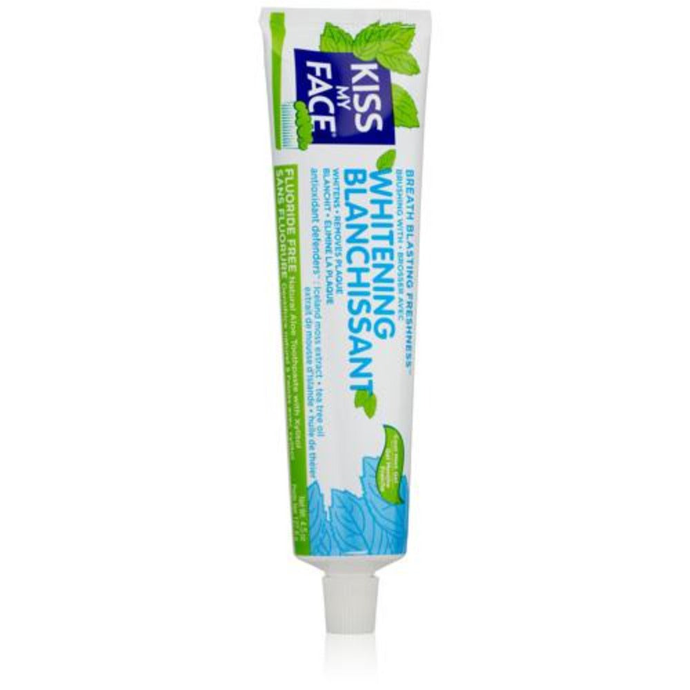 Enjoy Kiss My Face Toothpaste - Whitening - Fluoride Free - Gel - 4.5 oz every day at these amazing prices! One Kiss will give you Breath Blasting Freshness with great Peppermint taste. Our Whitening Formula helps: Whiten with Icelandic Moss Remove plaque with Xylitol and Tea Tree Hey Kissers, give us a smile! With shockingly great taste, our effective formula helps your mouth feel healthy and fresh with Antioxidant Defenders and nature's most trusted ingredients: Tea Tree Oil, Iceland Moss, Olive Leaf Extract, Xylitol, Silica, Peppermint. Now with 32% more so you can keep kissing longer... One Kiss is all it Takes! Gluten free ingredients No Parabens No Phthalates No SLS Vegan Friendly Ingredients Not Animal Tested No Artificial Flavors No Artificial Fragrances Product characteristics include: Sorbitol, Glycerin, Hydrated Silica, Water, Xylitol, Aloe Barbadensis Leaf Extract, Melaleuca Alternafolia (Tea Tree) Leaf Extract, Olea Europaea (Olive) Leaf Extract, Cetraria Islandica (Iceland Moss) Extract, Stevia Rebaudiana Extract, Flavor, Mentha Piperita (Peppermint) Oil, Menthol, Ammonium Glycyrrhizate (Licorice), Xanthan Gum, Cellulose Gum, Sodium Methyl Cocoyl Taurate, Sodium Lauroyl Sarcosinate, Chlorophyllin- Copper Complex, Potassium Sorbate. organic (Please note: Description is informational only. Always read the product label before use and check with your health professional before using this product)4.5 OZ